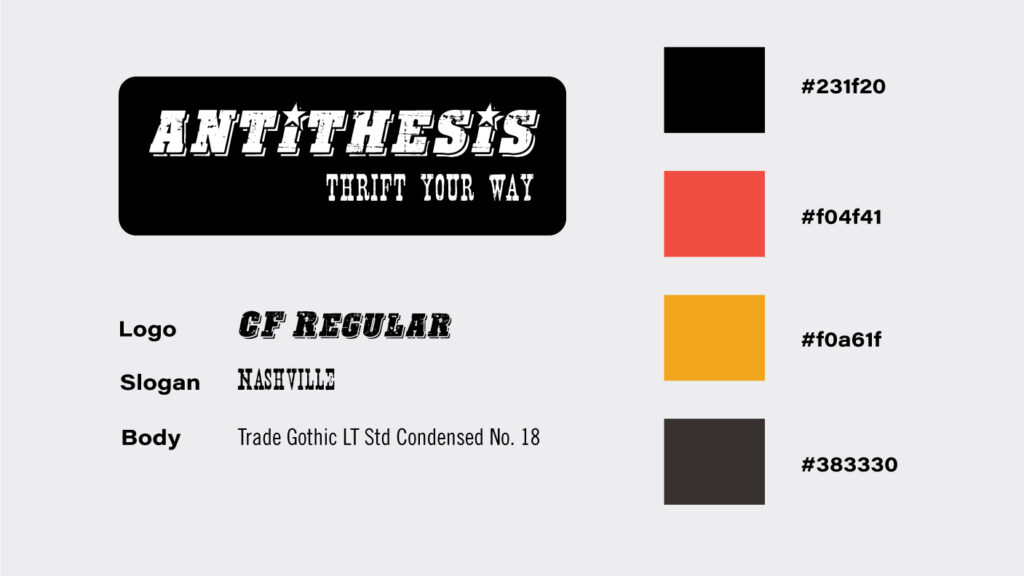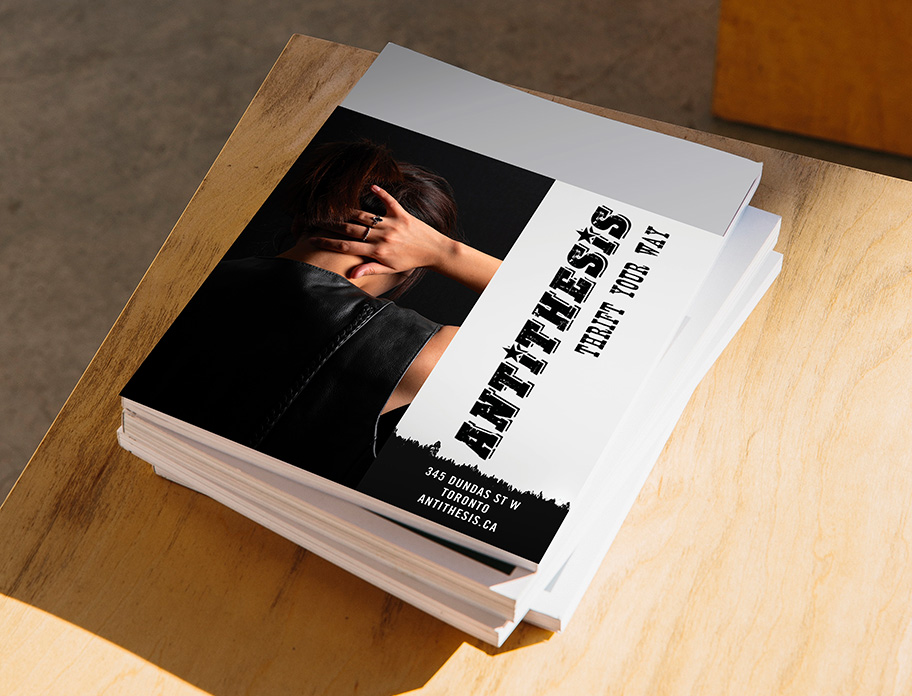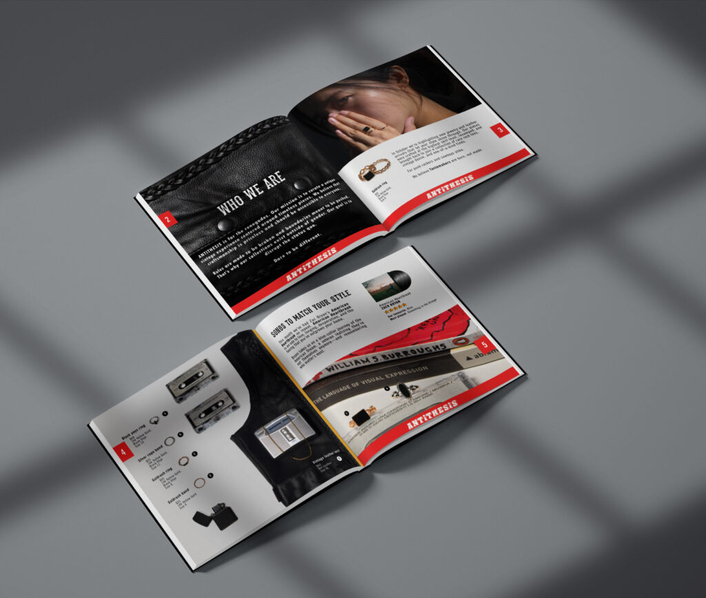 For this project, I designed a lookbook to promote ANTITHESIS’ new arrivals. After creating the brand and logo, I came up with a photoshoot concept: cowboy meets modern-day rebel. The goal was to showcase the renegade lifestyle the brand is selling just as much as the products.